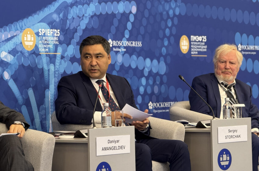 Петербург Эл аралык экономикалык форумунун алкагында Кыргыз Республикасынын Министрлер Кабинетинин Төрагасынын биринчи орун басары Данияр Амангелдиев эркин баарлашуу форматында өткөн “ЕАЭБ экономикасынын реалдуу секторунун синергетикасы заманбап чакырыктарга жооп катары” сессиясында сөз сүйлөдү.