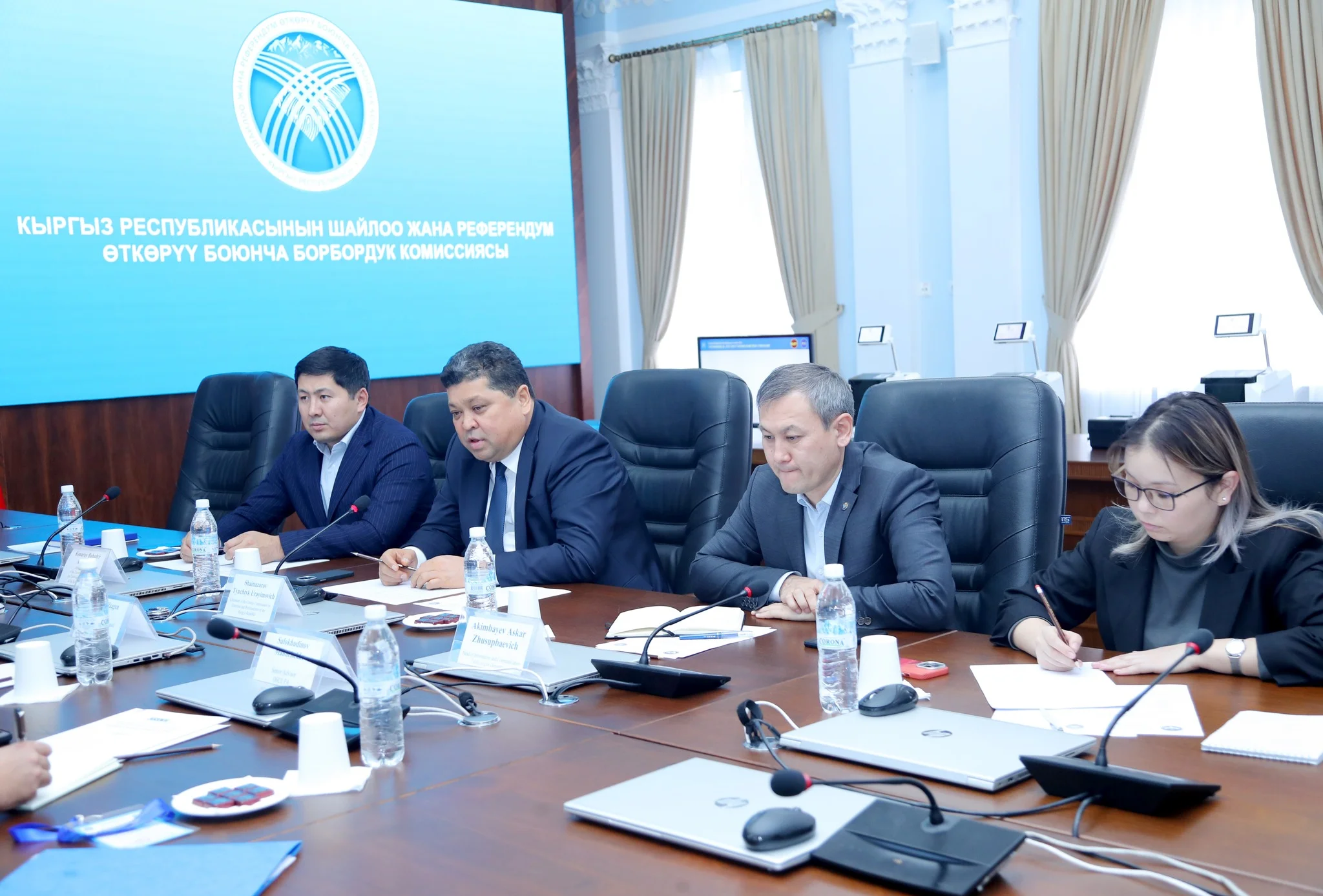 Были обсуждены вопросы подготовки к проведению досрочных выборов депутатов Жогорку Кенеша КР, а также взаимодействия с международными наблюдателями.