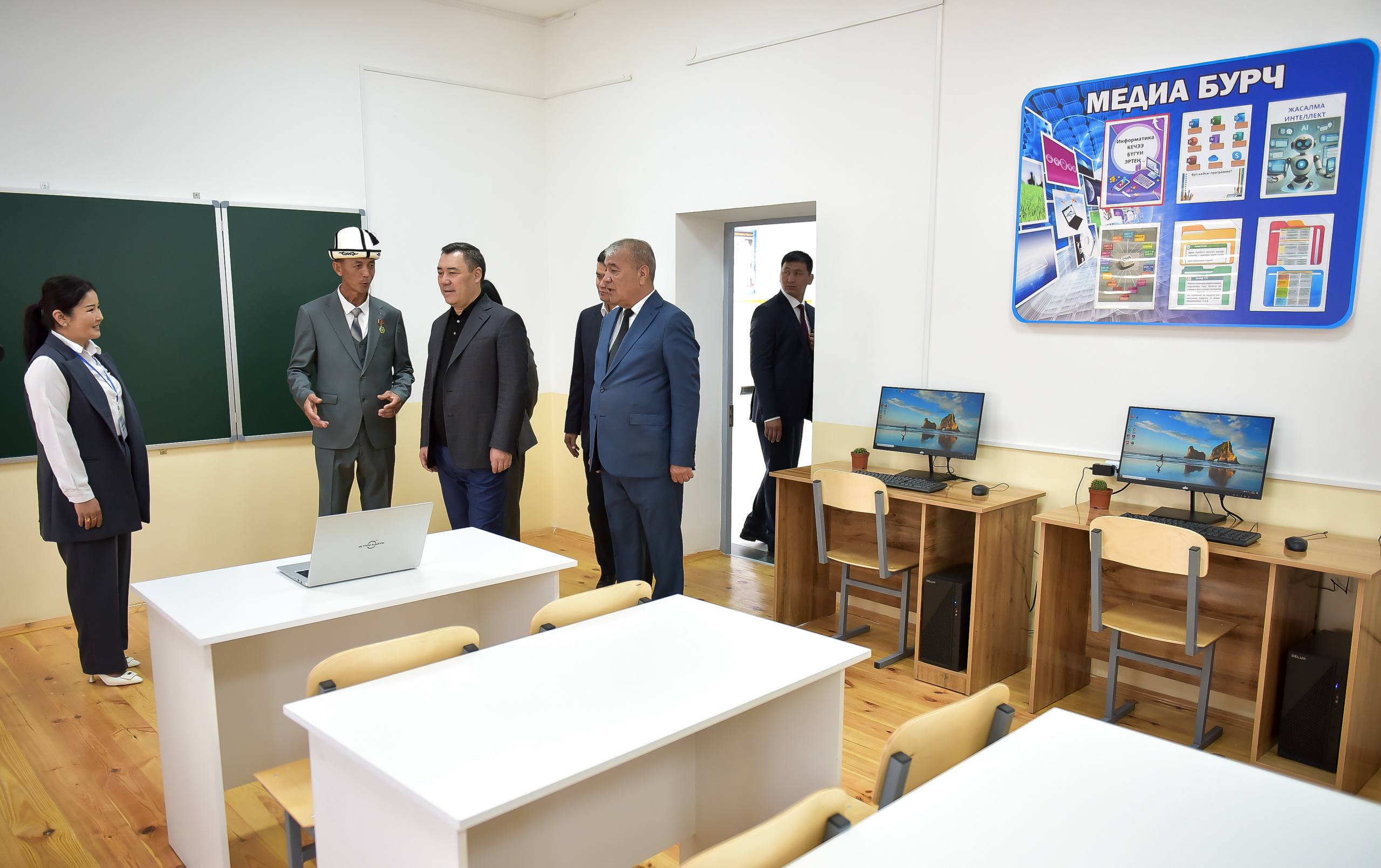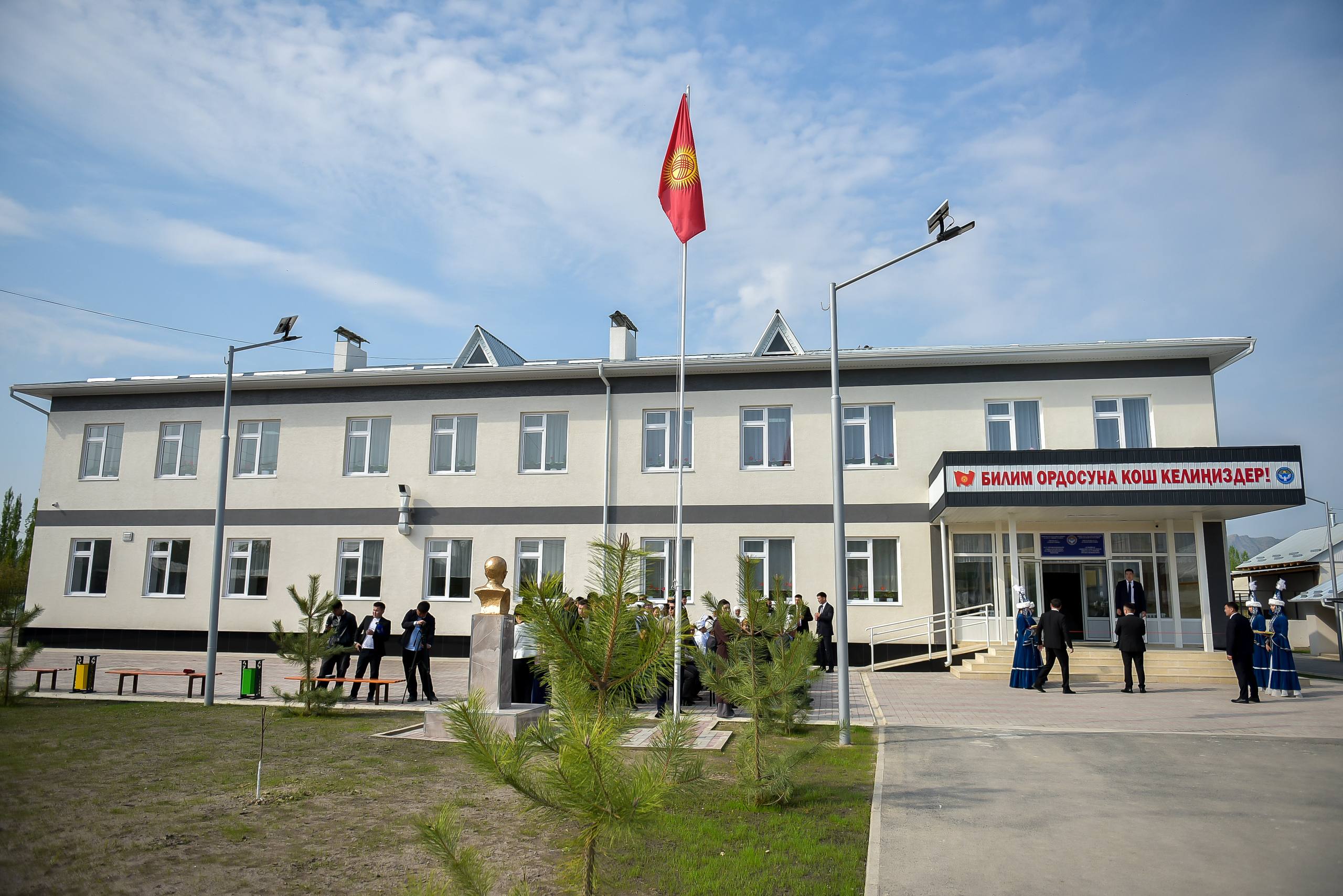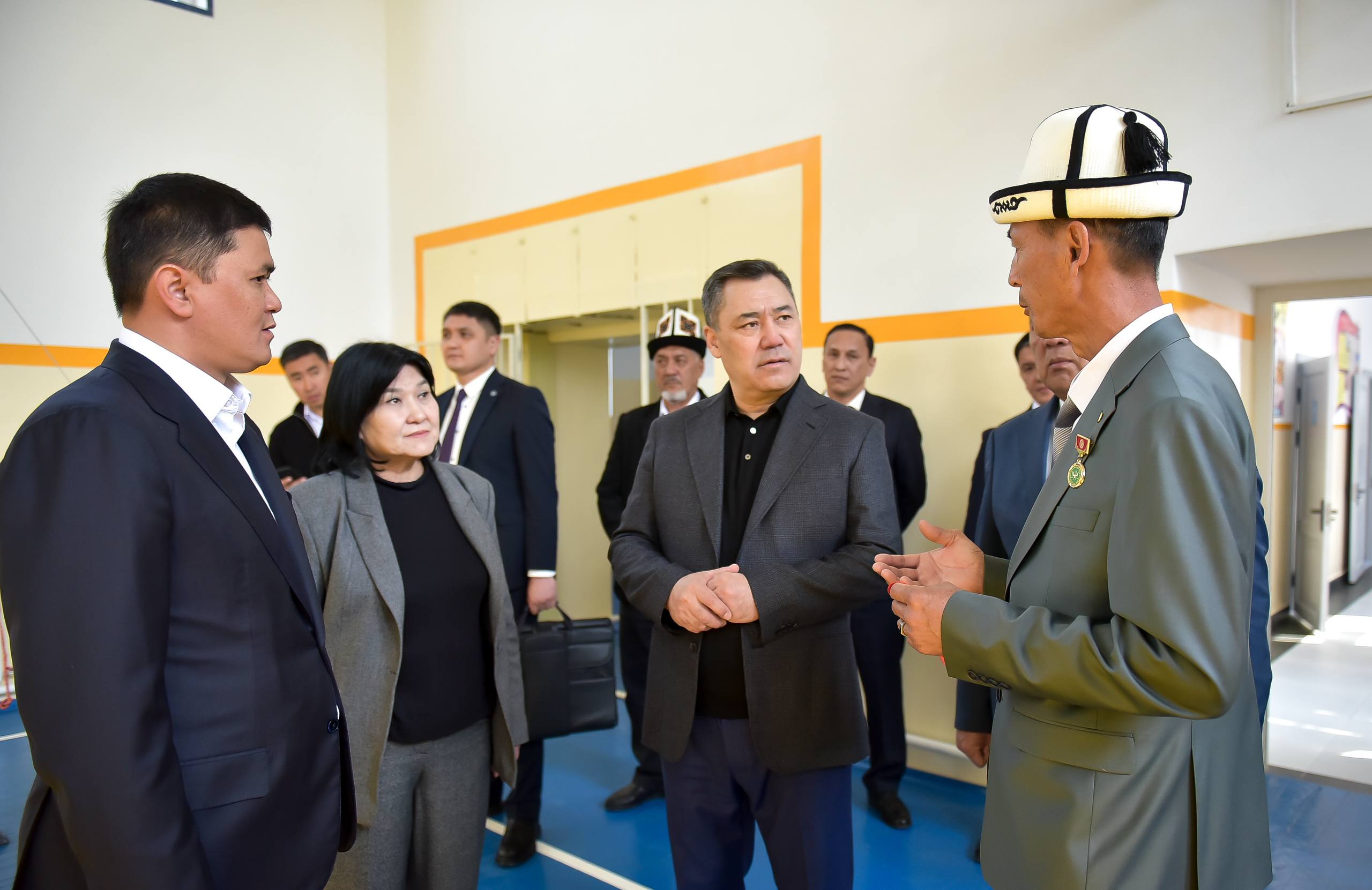 Президент Садыр Жапаров сегодня, 11 апреля, в ходе рабочей поездки в Ошскую область принял участие в церемонии открытия школы №47 им. Эргеша Кебекбаева в с. Гулбаар Араванского района.