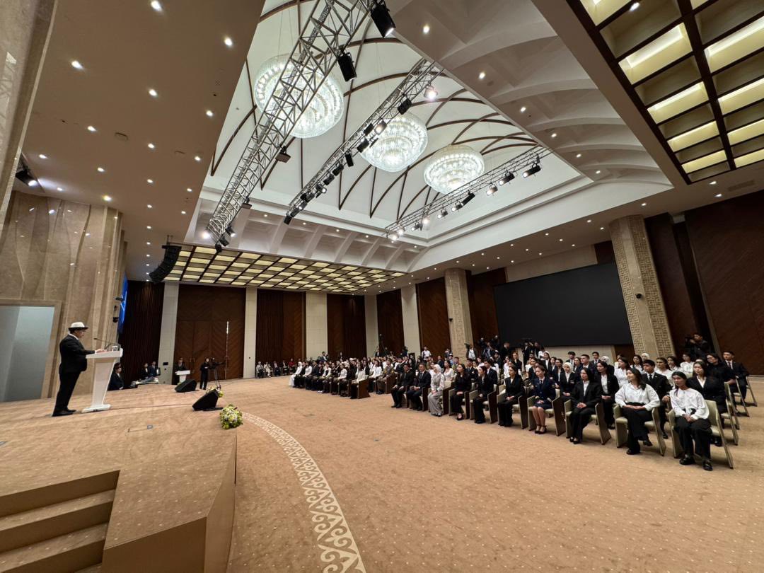 Каждого стипендиата, сидящего в этом зале, я воспринимаю как представителя нового поколения, думающего по-новому, стремящегося стать лучшим в своей профессии и готового служить своей стране. Ваш сегодняшний успех — это результат труда профессорско-преподавательского состава, всесторонней поддержки родителей и вашей собственной жажды знаний.
