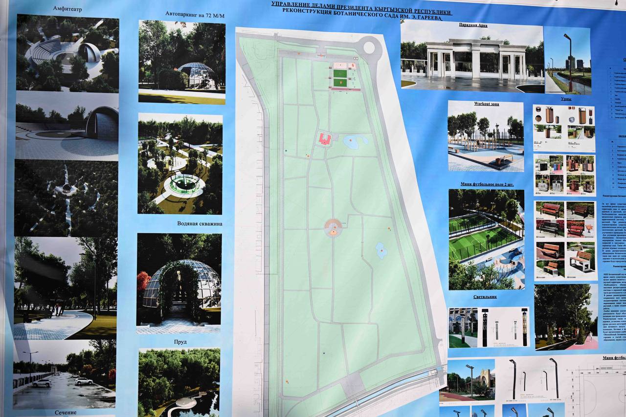 По итогам осмотра было установлено, что для проведения полной и комплексной реконструкции Ботанического сада имени Э. Гареева требуется порядка 340 млн сомов. Необходимые работы включают реставрацию дорожек, благоустройство пешеходных зон, восстановление и модернизацию систем полива, водоснабжения и дренажа; обновление и расширение дендрологического фонда с пополнением коллекций редких и исчезающих видов и созданием новых экспозиций.