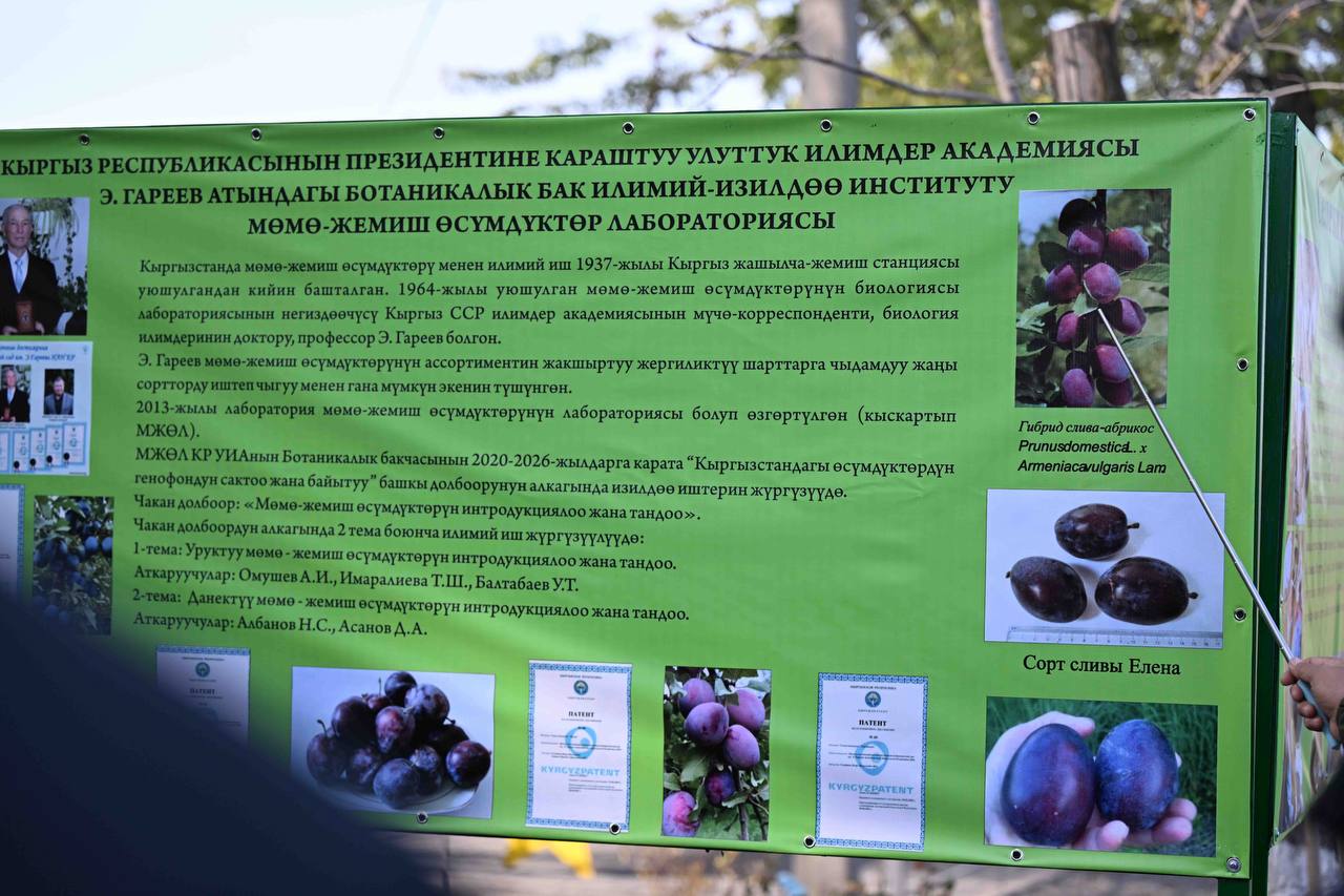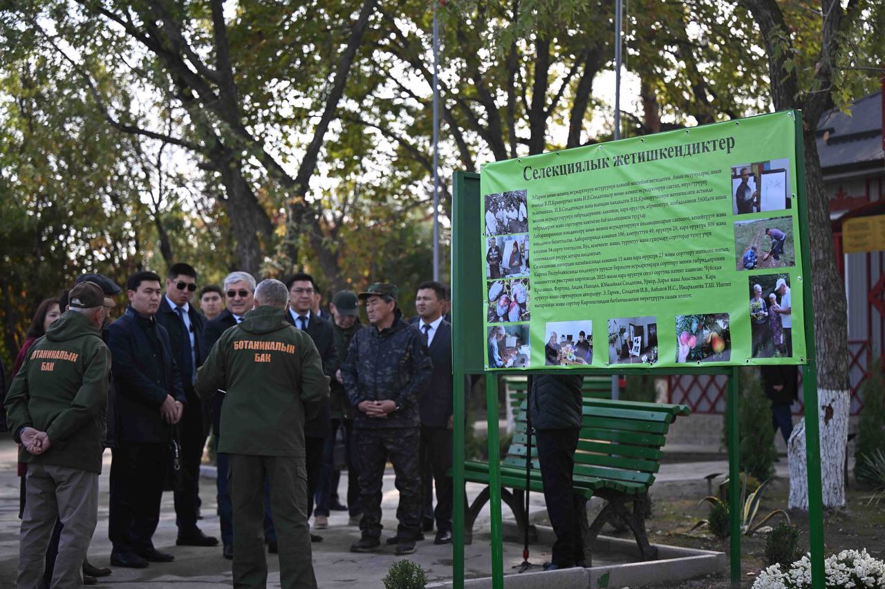 Адылбек Касымалиев особо подчеркнул значение Ботанического сада, отметив, что сад является не только важной рекреационной зоной для жителей столицы, но и ключевой научно‑исследовательской базой для всей Кыргызской Республики.