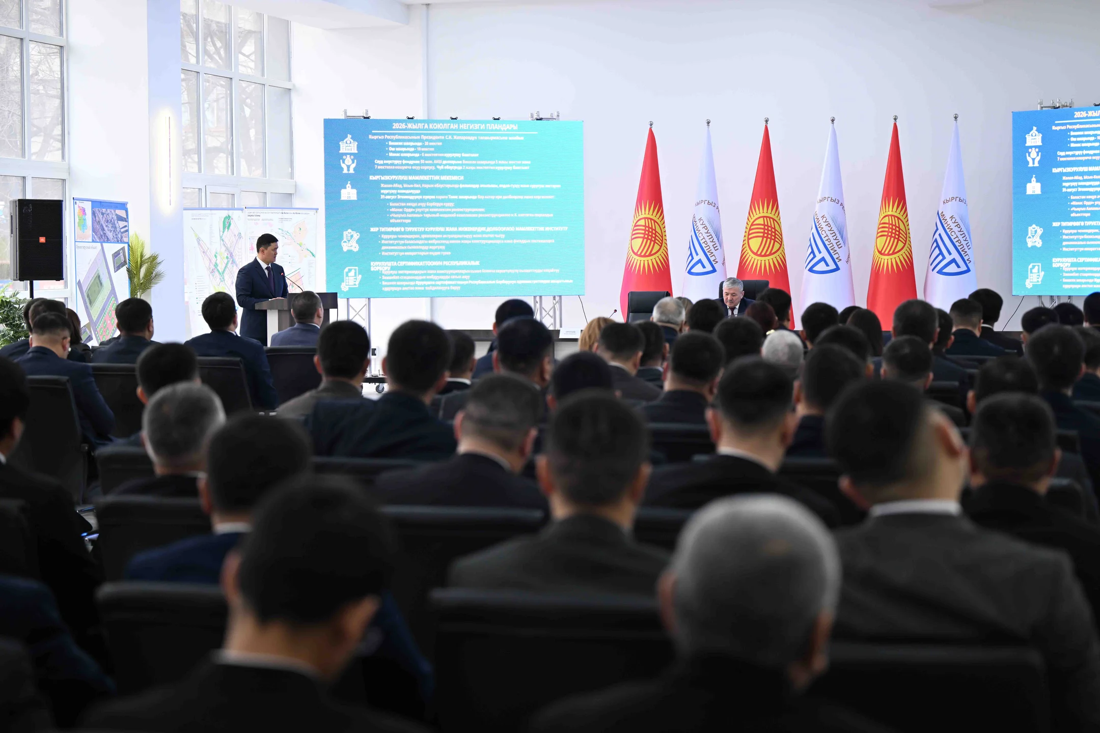 Отмечено, что с 2021 года государством в строительную отрасль направлено более 170 млрд сомов, что позволило достичь рекордных показателей и завершить строительство 936 социальных объектов.