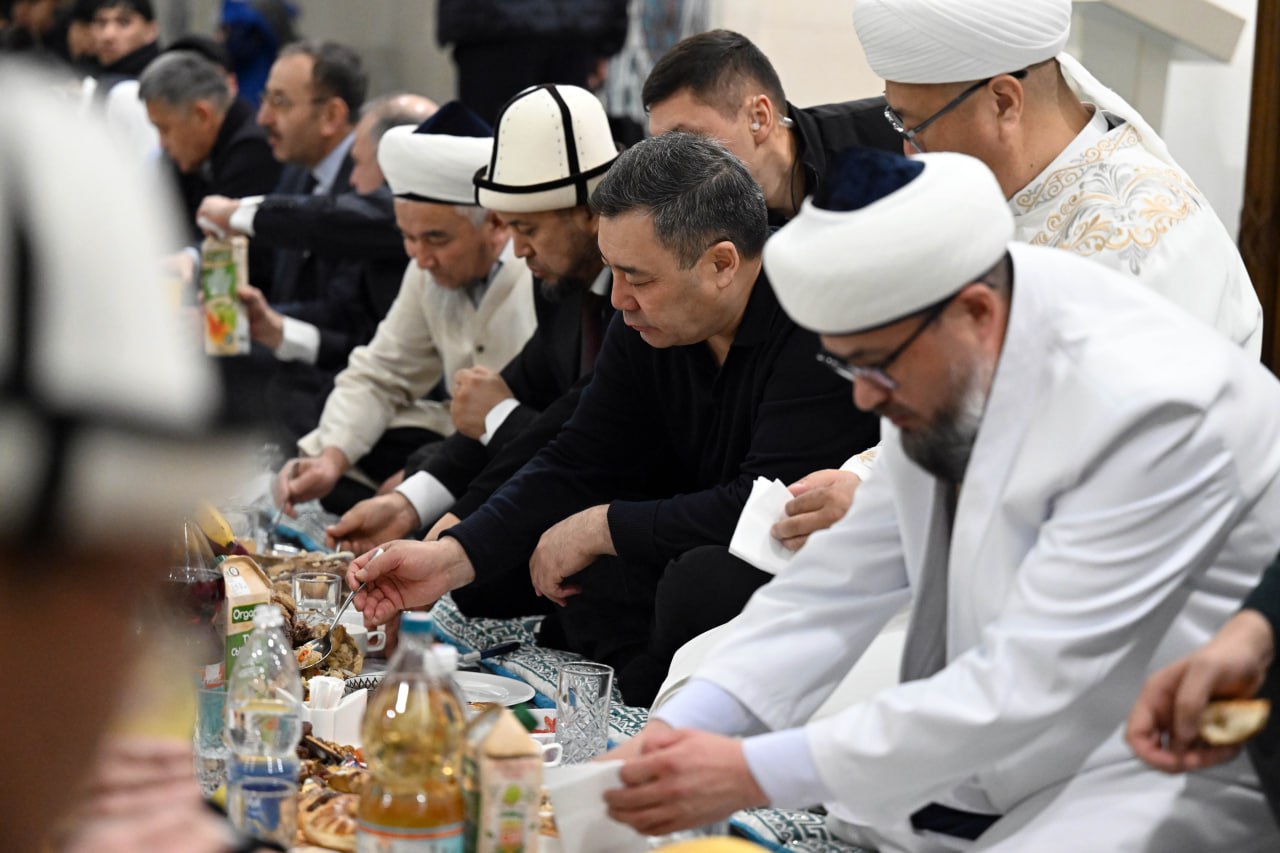 Президент Садыр Жапаров 6 марта провел ооз ачар для прихожан Республиканской центральной мечети имени имама Сарахси в городе Бишкек.