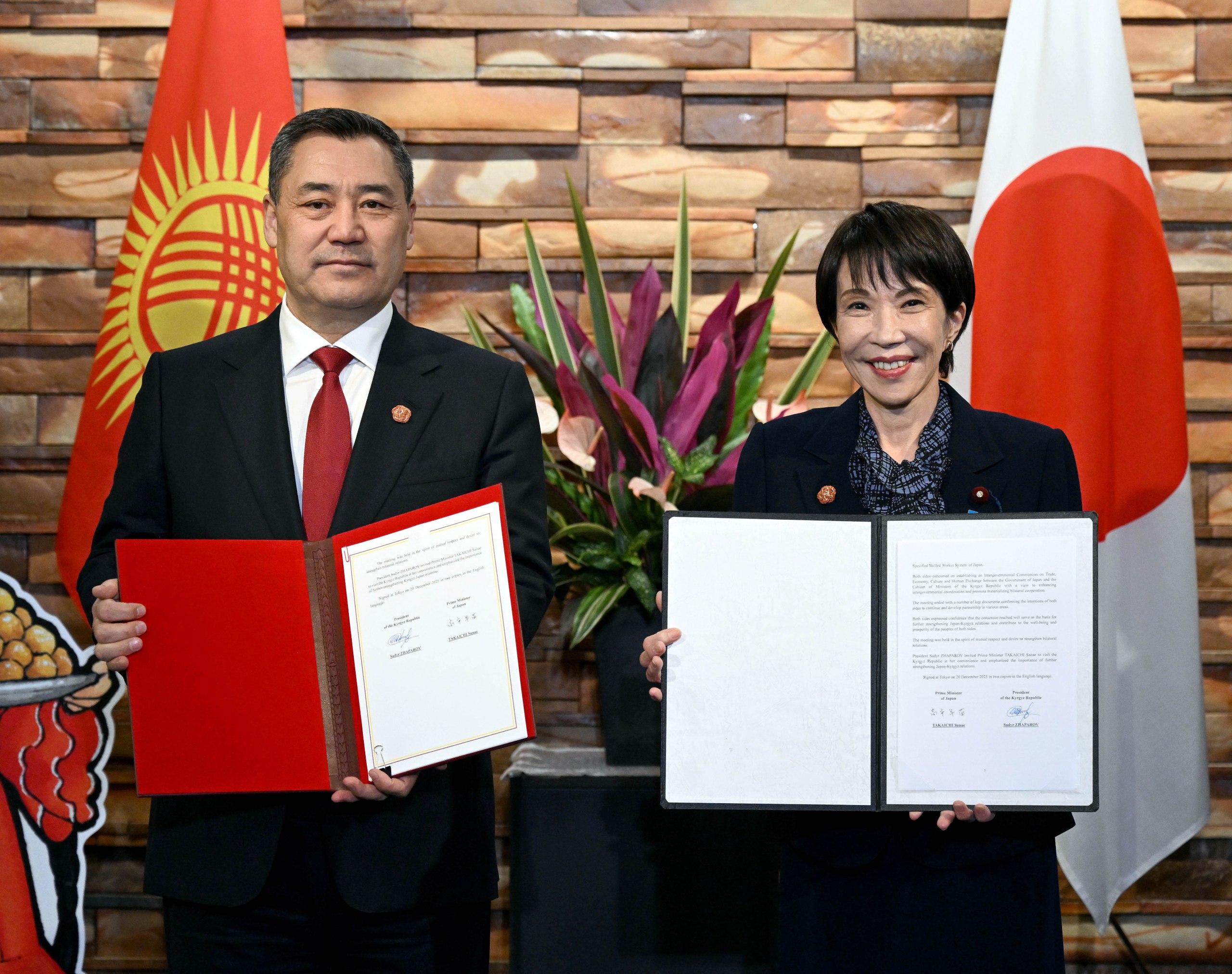 — Совместное заявление по итогам встречи Президента Кыргызской Республики С.Н. Жапарова и Премьер-министра Японии Санаэ Такаити о дальнейшем развитии отношений между Кыргызской Республикой и Японией в целях совместного создания взаимовыгодного сотрудничества;