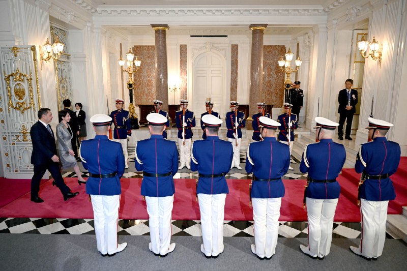 Мамлекет башчысын Япониянын Премьер-министри Санаэ Такаити тосуп алды.